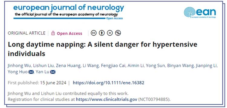 参考资料:[1]Wu J, Liu L, Huang Z, Wang L, Cai F, Li A, Sun Y, Wang B, Li J, Huo Y, Lu Y. Long daytime napping: A silent danger for hypertensive individuals. Eur J Neurol. 2024 Jun 15:e16382.