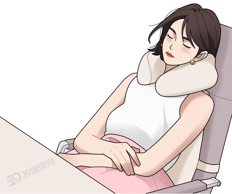 脖子上套u型枕,上半身靠椅背上,腰后垫个靠枕,身上盖个毯子保暖。