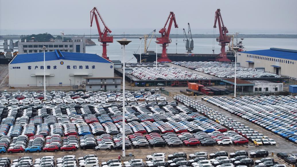 2024年7月16日,江苏省连云港港待出口的上汽新能源车。