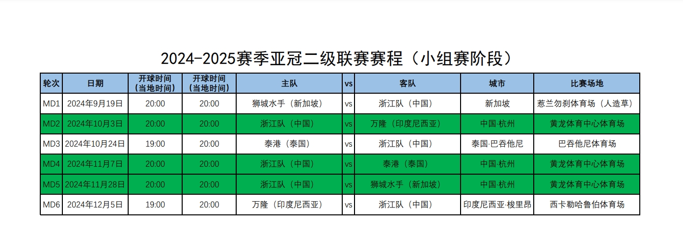 2.2024-2025赛季亚冠二级联赛赛程(小组赛阶段)