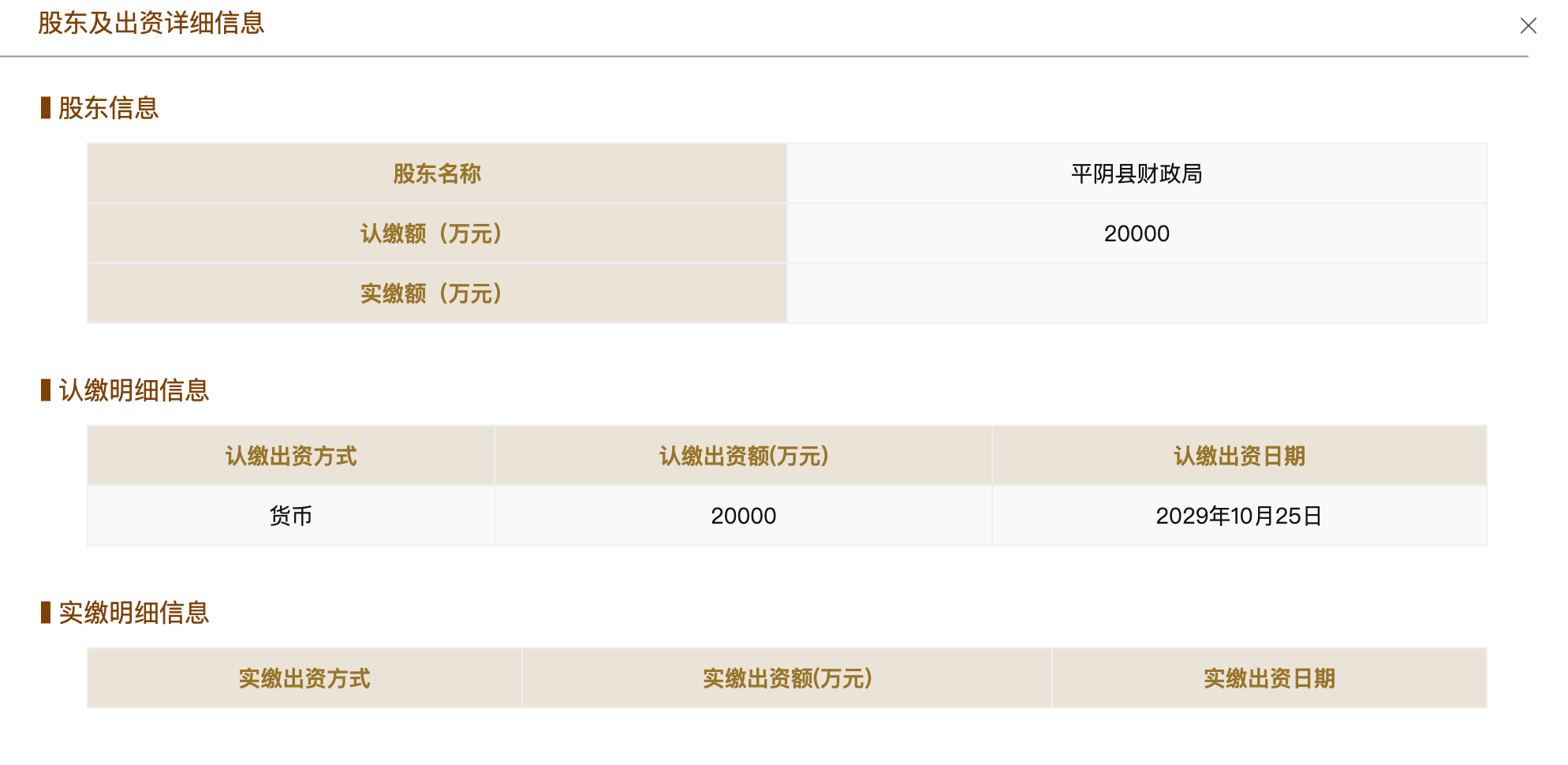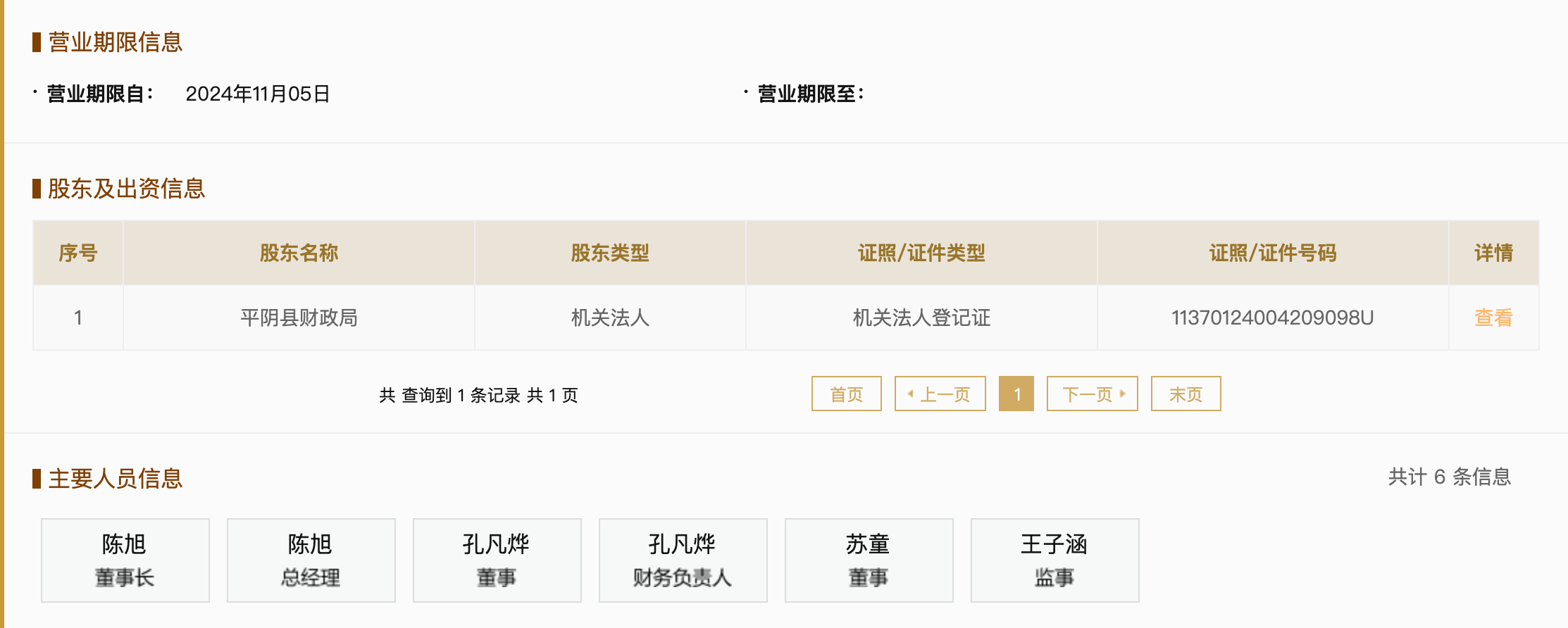 据国家企业信用信息公示系统显示,山东金宇通用航空有限公司成立于2024年11月5日,位于山东省济南市平阴县。股东为平阴县财政局,认缴额为2亿元。公司董事长及总经理为陈旭。而11月5日,也是此前招标公告的发布日期。