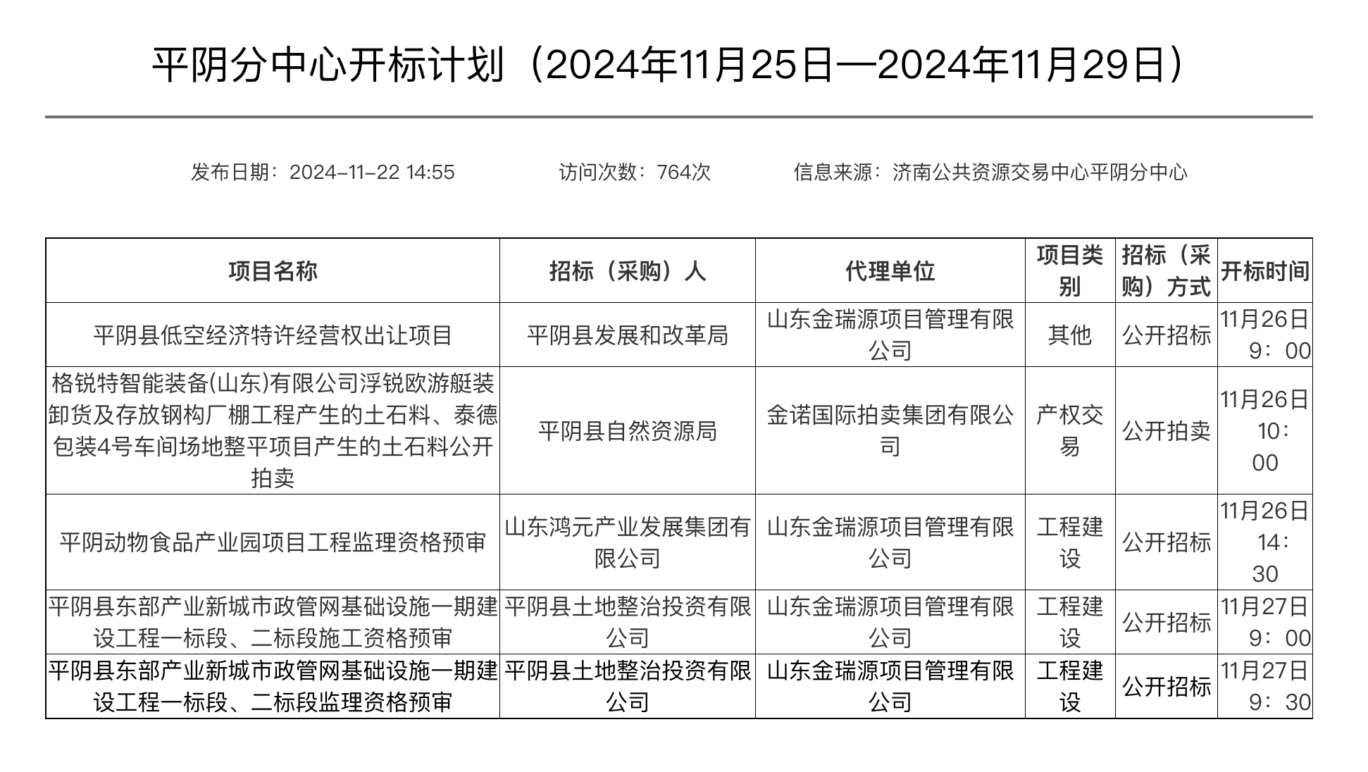 项目招标人为平阴县发展和改革局,中标单位为山东金宇通用航空有限公司,招标日期为11月5日,中标日期为11月26日。