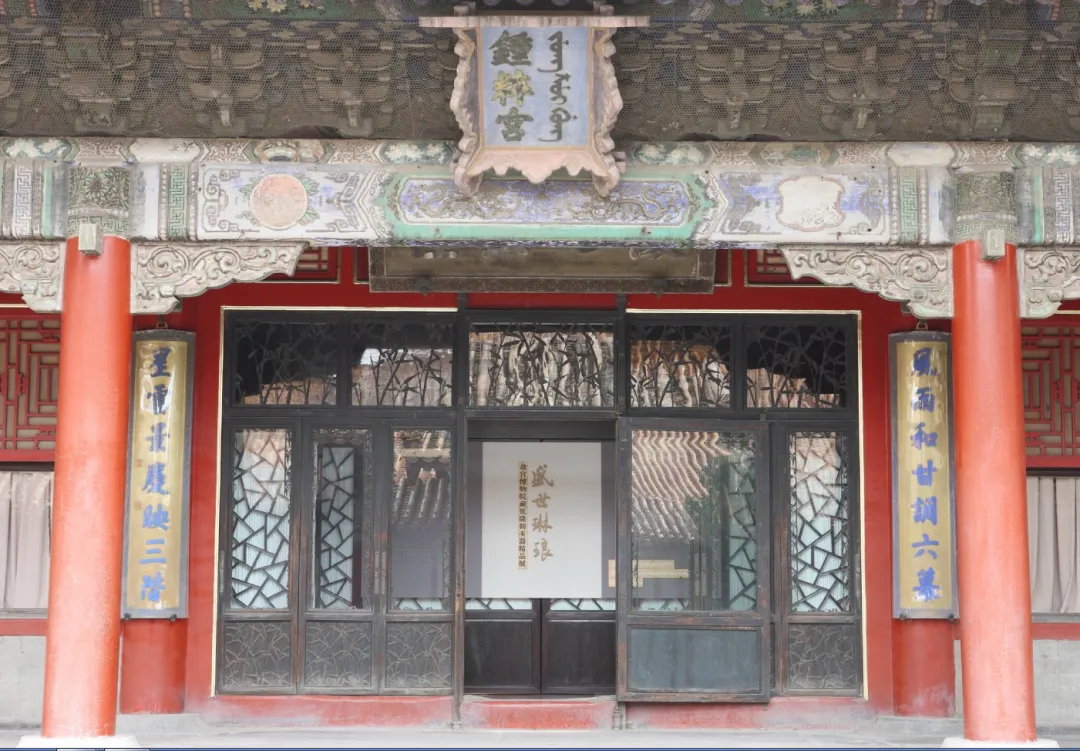 后殿仅存明间东西缝碧纱橱楠木灯笼框松竹梅卡子花横披,东次间东缝楠木透雕竹叶翠鸟大小花罩栏杆罩,西次间西缝松竹梅卡子花横披。