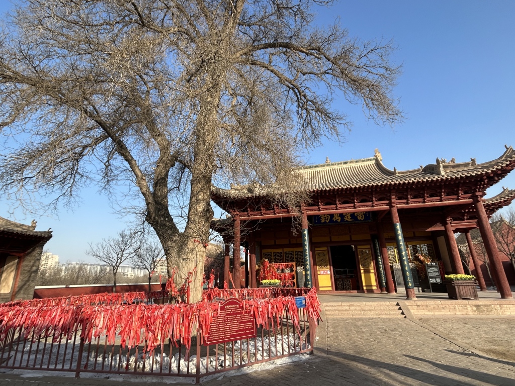 冬日里零下十度的武威一派宁静,空气中透着泠冽,阳光很好映得天空澄澈淡蓝,不觉着温暖,也没太寒冷。