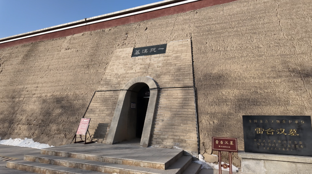 雷台汉墓外观并不张扬,它以一座高大的夯土台静静矗立在城郊平地之上,台体方正厚重,覆土层层堆叠,远望如一座孤峙的土丘。