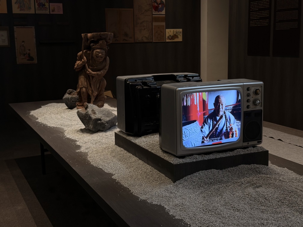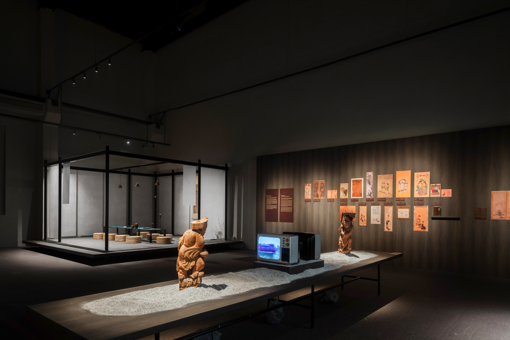 由左靖、王彦之联合策划的“谁是寒山子?”展览入口处,是基于《寒山诗集》南宋刻本构建的大型装置,精选最具代表性的诗句予以高亮,邀请观众循诗探人,从字里行间追索这位隐士诗人的生平轨迹、生活样态与诗歌风格。这些诗句多为流传最广、影响深远之作:曾最早被译为西文,启发“垮掉的一代”的诗人与作家;也曾被谱入新曲,例如郑飞作曲的《寒山子的诗——为三弦与民族管弦乐乐队而作》,在当代艺术与音乐创作中不断获得再生。在整个展览中,观众多次与这些诗句重逢,借由不同媒介与语境,体会寒山之诗如何穿越千年,激发跨时空的文化共鸣。