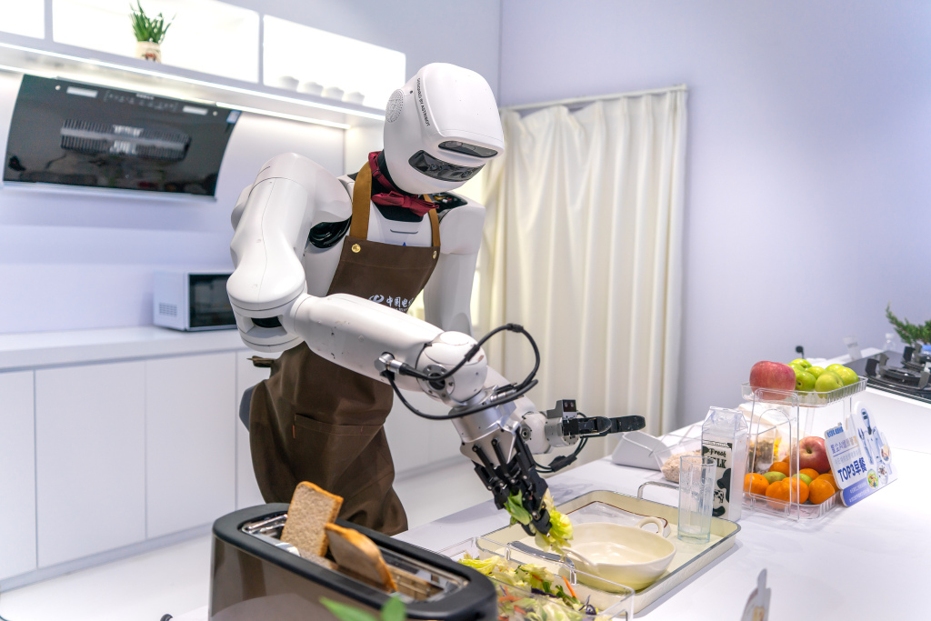 机器人完成烤面包、摆盘等操作