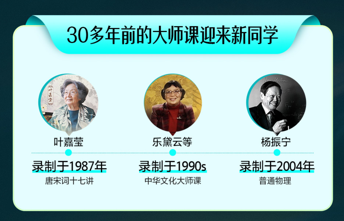 哪些城市的人最爱在网上学习?从最近公布的一份网络课程数据报告来看,前三名是北京、上海和西安!前沿的AI计算机相关课程成为最受欢迎的公开课,同时,一些几十年前录制的经典大师课也迎来了这个时代的新同学。1987年录制的叶嘉莹《唐宋词十七讲》,季羡林、侯仁之、汤一介、乐黛云等录制的《中华文化大师课》,以及杨振宁于2004年录制的《普通物理》,均受到大量网友喜爱。