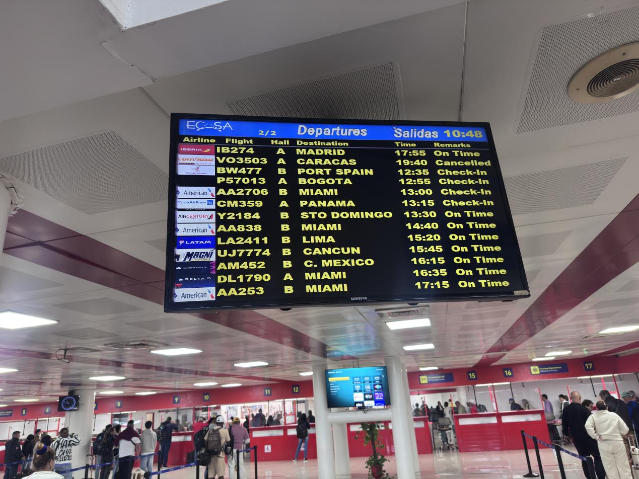 2月10日,郭焱抵达哈瓦那机场,当天正好是古巴当局“断供”航空燃油的首日。他注意到,当时绝大部分航班都在有序运行,游客中也没有爆发恐慌情绪。“航班不多,都是飞秘鲁、美国和哥伦比亚等地。布告牌基本显示‘准点’或者‘值机’,但的确有个加拿大廉航的航班被取消了。”