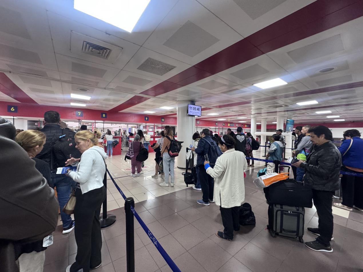 离开哈瓦那时,乘客正在机场有序排队。郭焱供图