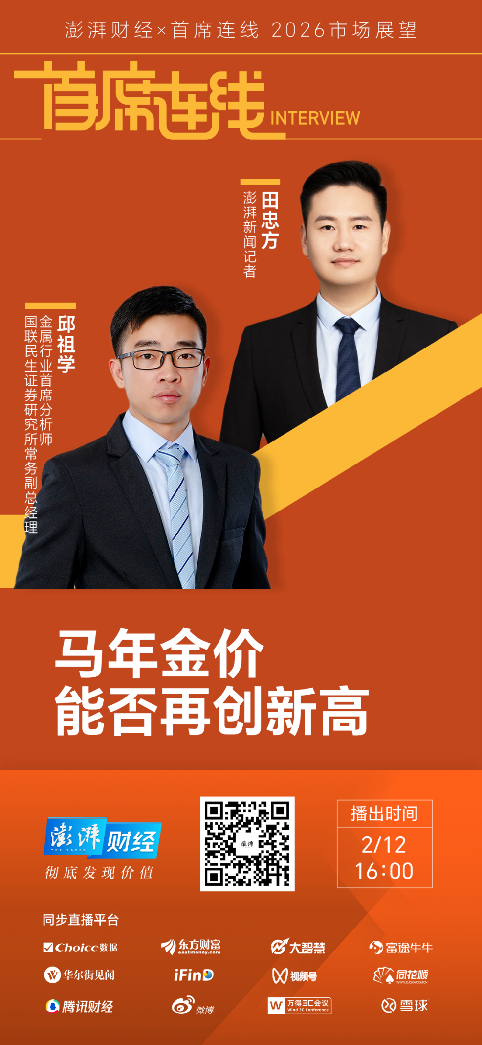 近日,国联民生证券研究所常务副总经理、金属行业首席分析师邱祖学做客澎湃新闻“春水向东流——《首席连线》2026年市场展望”专题,带来分析和展望。