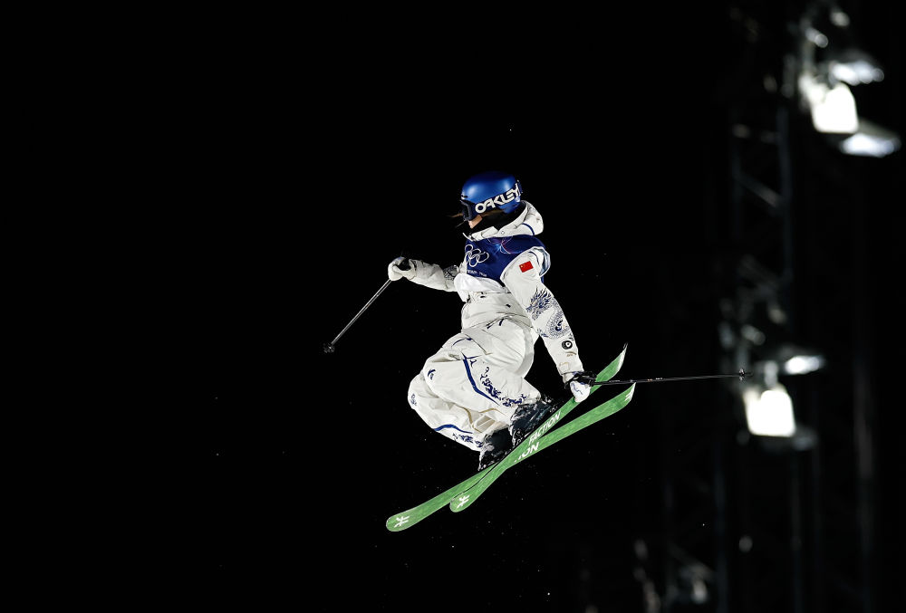 2月14日,中国选手谷爱凌在女子大跳台比赛中。新华社记者 夏一方 摄