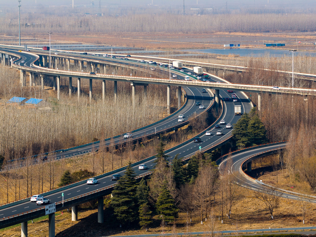 2026年2月15日,江苏扬州,车辆行驶在京沪高速江苏扬州段。视觉中国 图