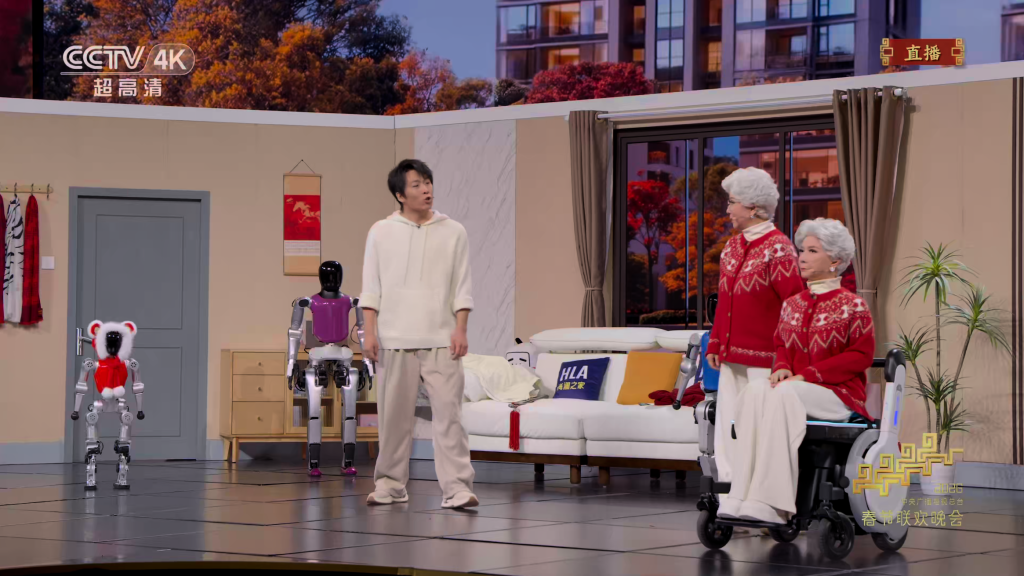 松延动力则聚焦情感化交互,在语言类节目《奶奶的最爱》中,其N2、E1、小布米等双足及仿生机器人与蔡明时隔30年再续机器人前缘,在节目中完成了侧手翻、拟人跑等动作。