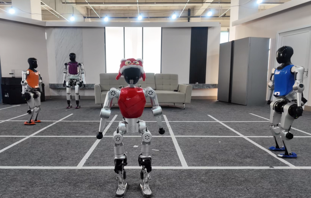 节目中,机器人的动作轨迹与节拍上高度对齐,快速转向、跃动衔接与连续编排动作稳定完成,整体表现保持一致性与零误差执行,无论是重心转移、平衡调节还是多关节协同控制,Z1均维持稳定输出,体现出其整机运动控制与实时协同算法的工程成熟度。