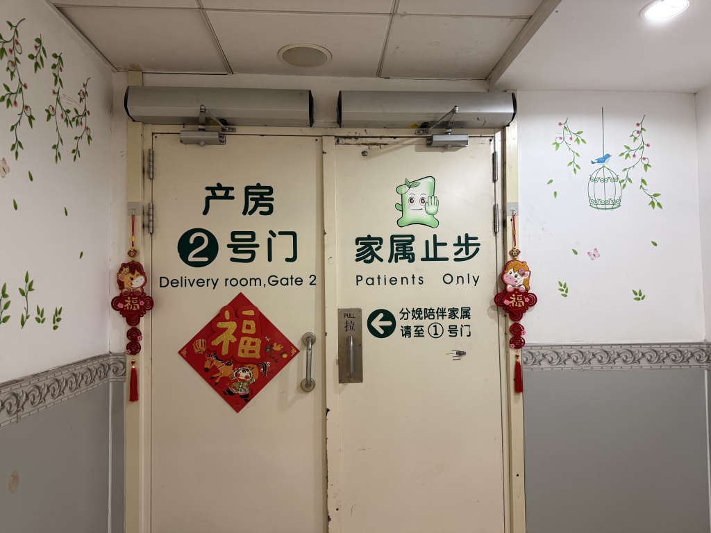上海市第一妇婴保健院浦东院区产房,门口张贴了福字。澎湃新闻记者 陈斯斯 摄