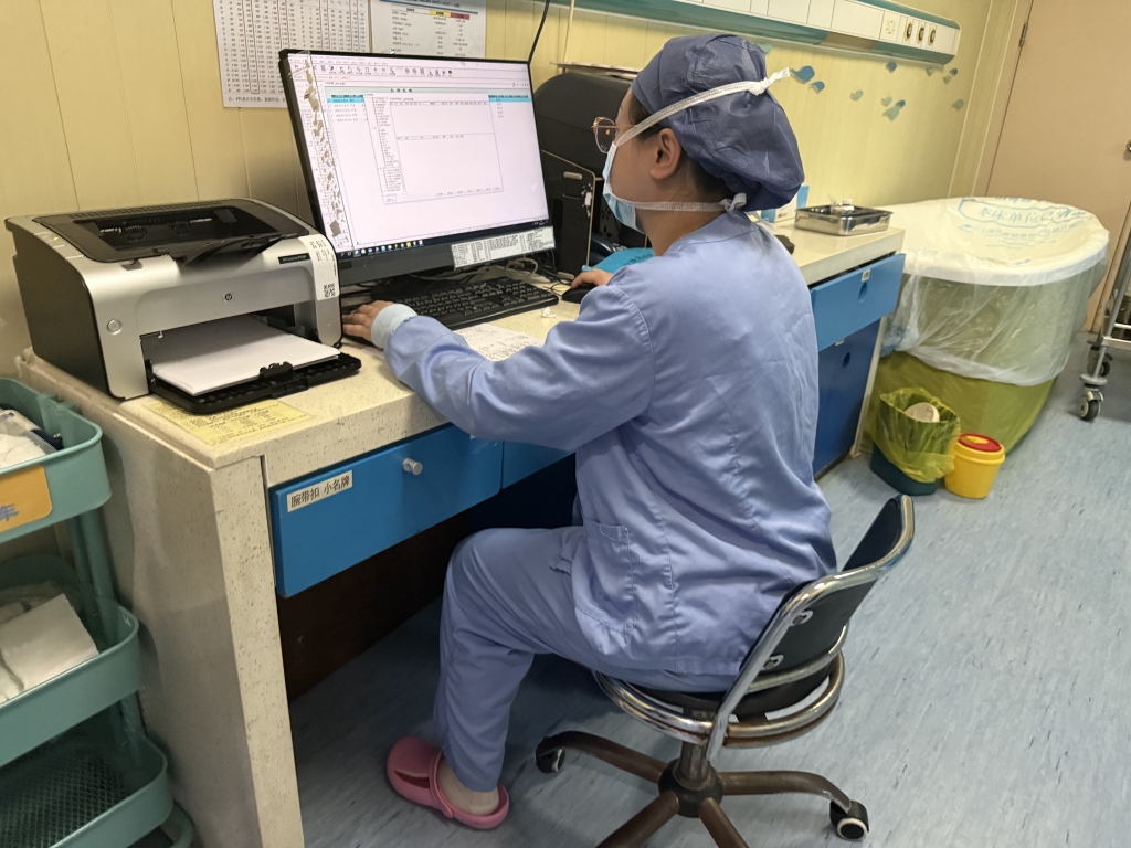 2026年是周丸丁第三次在产房“跨年”了。当晚,她所在的产房位于医院住院部大楼2楼,需要待产的孕妇都会被送入这里,进入全程的胎心监测和产程管理,“其中,胎心监测最为关键,孕妇生命体征是否正常、宫口开到几指等等,这些我们都需要随时跟进。”就在除夕夜当晚8点不到,产房里一名孕妇出现了发热情况,体温升到了37.8摄氏度,胎心监护出现异常,经综合评估并与孕妇及家人沟通,周丸丁决定将孕产妇紧急从待产室转入3楼的手术室,完成急诊的剖宫产手术。