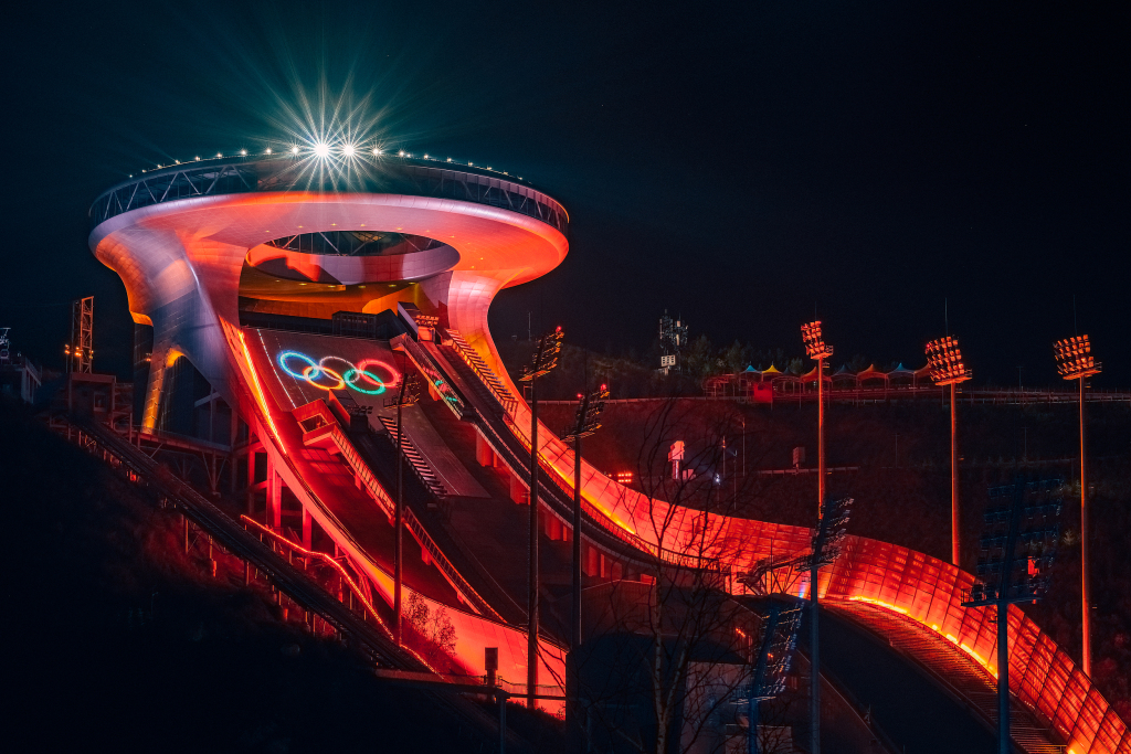 国家跳台滑雪中心夜景。
