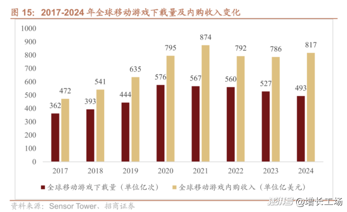 但一个让业内都意外的数据是,2024年,全球内购收入回升至817亿美元,接近历史高位。这种“下载规模收缩、收入端保持高位”的结构性分化,意味着增长的驱动力已由新增用户规模,转向对存量用户价值的持续挖掘。