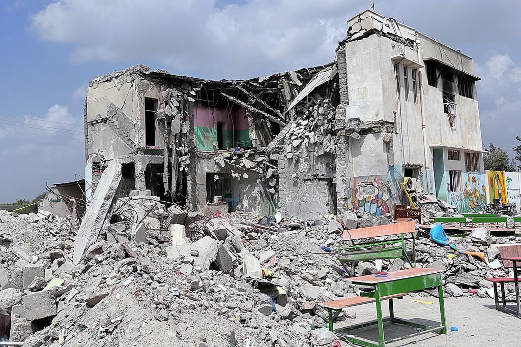 伊朗米纳卜一所女子小学遭袭后的废墟景象