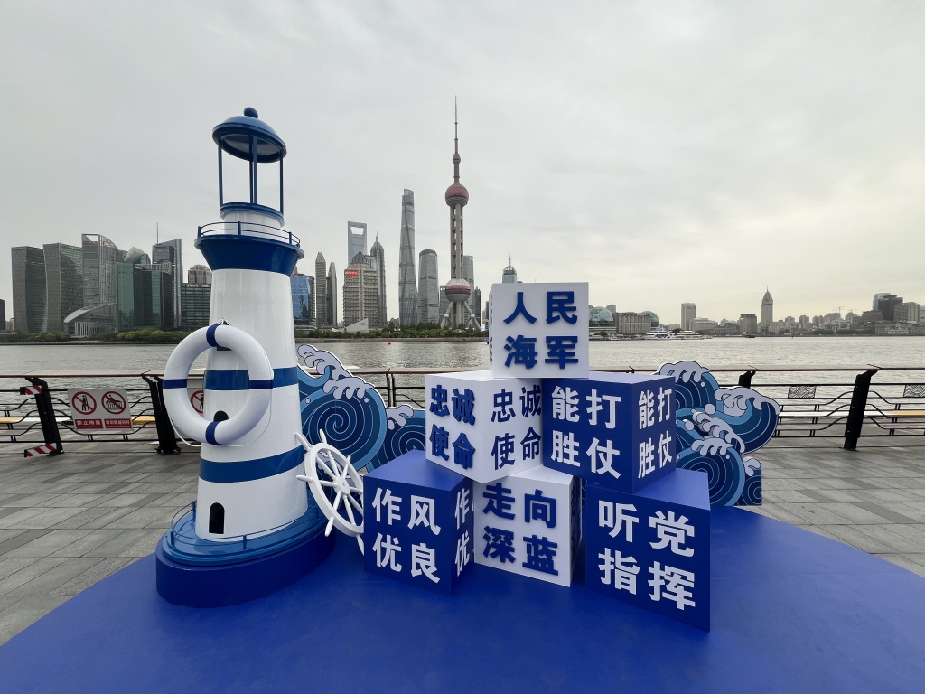 4月21日上午,在人民海军即将成立77周年之际,以“上海·海上”为主题的舰艇开放活动在上海港国际客运中心码头再度启幕。海军阜阳舰、海军千岛湖舰悬挂满旗,迎接各界群众登舰参观。这是该主题活动第三次与上海地标同框亮相,吸引了大批市民前来参与。