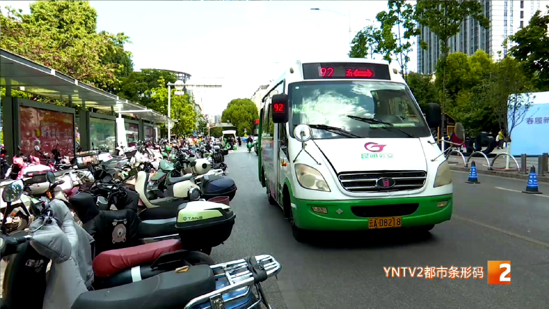 周末是各大商圈人流量最大的时候。4月11日星期六的下午,位于北京路的同德昆明广场购物中心人潮涌动。记者观察发现,金江路与白云路交叉口距离商场入口不过几十米,是共享单车停放最密集的地方。下午五点,记者在现场粗略统计,短短不到200米的距离,路边停放了超过200辆共享单车,既有共享自行车也有共享电动车,包括20辆哈啰、86辆美团和95辆青桔,此外也有不少私人电动车。这些车辆层层叠叠密密麻麻,几乎占据了人行道与非机动车道的全部空间。行人被迫走上机动车道,公交车进站也十分困难。