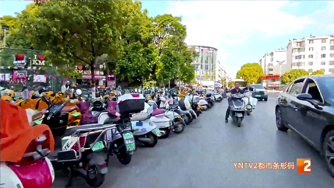 商场保安:“早上商场没开门的时候,他们会停到商场外面,我们就会把车推到对面那边, 没办法。”