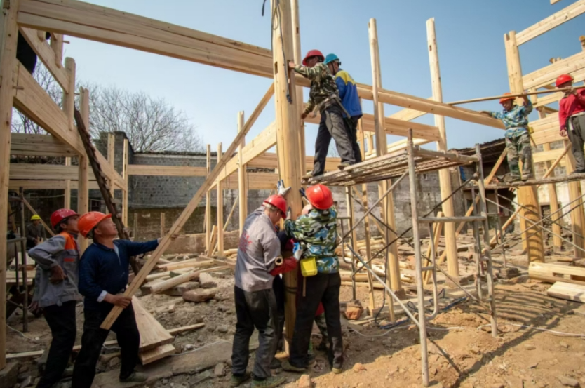 金溪县工匠技师修复老宅子。邓东兴/摄