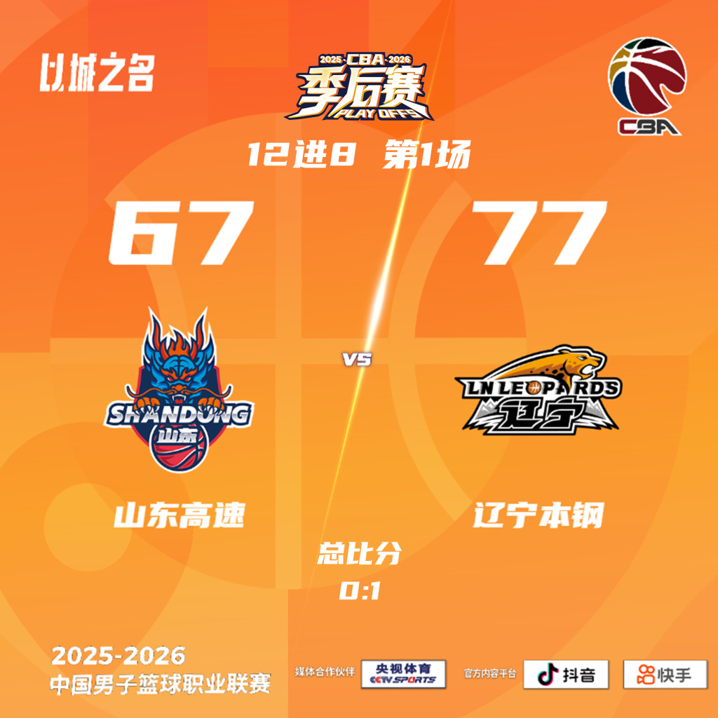 4月28日,据新华社报道,CBA季后赛拉开帷幕,客场作战的两支球队均获胜。辽宁队以77比67战胜山东队,广州队以93比76击败广东队。