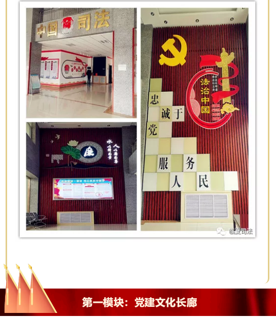 本网讯 2020年,为推进机关党建提升工程和打造标准化建设示范党支部,积极展示党建理念、党建经验、党建成果以及业务建设,切实推进机关党建文化,加强对干部职工的精神塑造和价值引导,甘肃省临夏州司法局利用一楼、四楼走廊过道作为党建文化展示的前沿,精心打造“党建文化”“党风廉政建设文化”及“司法行政业务工作展示”等三个模块长廊,运用文字、图片等表现形式,将党建常识、党建格言、反腐倡廉教育、警句名言、党建亮点工作、现代当代法治理念精神、司法行政业务作为主要内容,制成新颖别致的展板,经过精心设计、装裱,悬置于走廊两侧,彰显忠诚于党、司法为民、以德修身的主题思想,营造以人为本、公平正义的浓厚文化氛围,让每一位党员干部的党性修养得到进一步提升、为民服务意识得到进一步增强。
