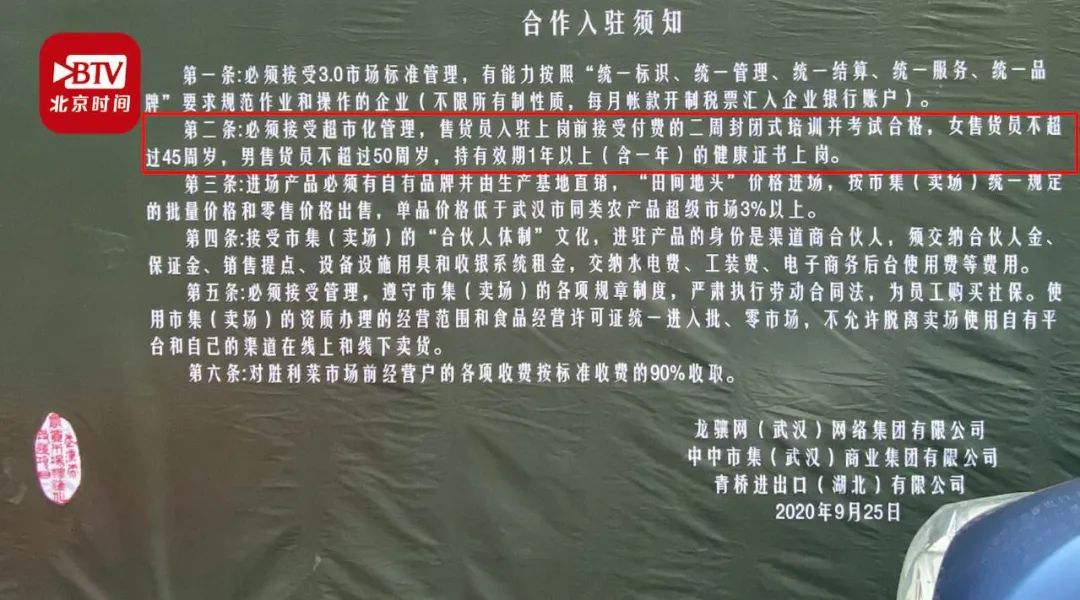 10月23日,武汉市一家菜市场在《入驻须知》中,要求入驻菜市场的女商贩,年龄不得超过45岁,男商贩不得超过50岁,被网友质疑:高龄商贩,在菜市场中本来就占有相当大比例的位置,这种年龄限制,于情于理都是一种对高龄人士的偏见,“什么时候,卖菜也要吃青春饭了”?