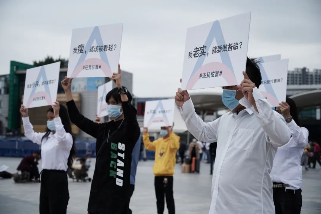 基于这一反思,11月14日及15日,皮阿诺在广州街头,发起了#还我位置#的举牌倡议活动,号召社会大众勇于向偏见说不,让每个人回到属于自己的位置,还大众一个文明公平、没有偏见的和谐社会。