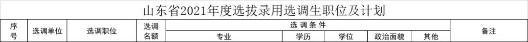山东省2021年度选拔录用选调生职位及计划(常规-县直)
