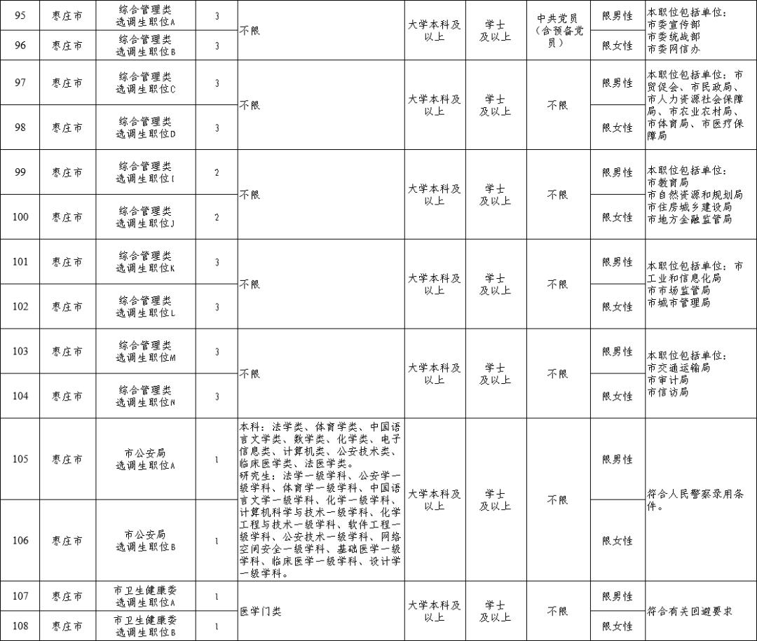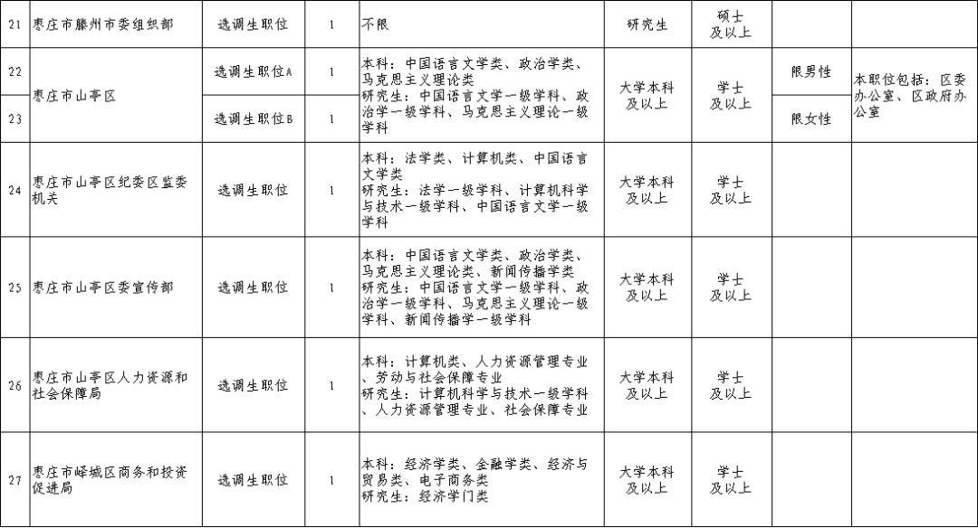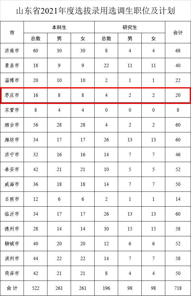 山东省2021年度选拔录用选调生职位及计划(枣庄市)