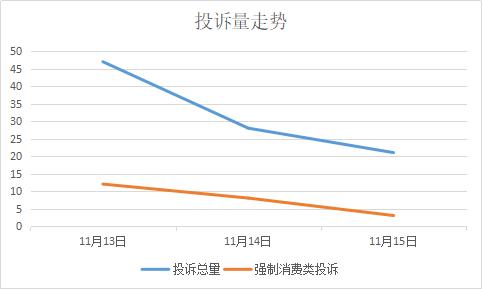 经过3天的集中整治,初见成效。近期投诉量走势图如下: