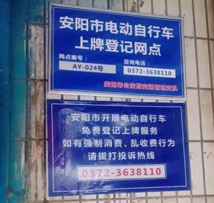 加强对备案登记网点的巡查监督。在网点显著位置张贴“安阳市电动自行车免费登记备案。如遇强买强卖、乱收费请拨打投诉电话0372-3638110”告示。加大力度宣传电动自行车登记上牌免费,严禁借助登记上牌强制消费,让免费深入人心。