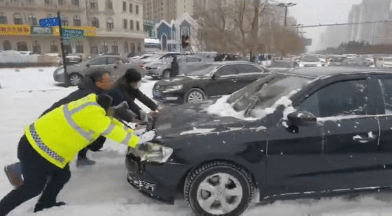 11月19日,肇源县境内普降大雪,很快道路被雪层覆盖,为防止因下雪天造成车辆打滑、刮擦和发生交通事故,肇源交警迅速启动恶劣天气应急预案,加大了对辖区重点路段巡逻管控力度,消除道路隐患,确保交通秩序的畅通、有序,全员提前上岗,坚持路面交通疏导。在路面民警的全力保畅下,辖区道路通行均相对正常。至下午14时,纷纷扬扬的大雪下个不停,滑路面结冰、能见度低,给道路交通带来很大的安全隐患,大雪纷飞交警蜀黍坚守在自己的岗位上,站在川流不息的马路中间指挥车辆前行。