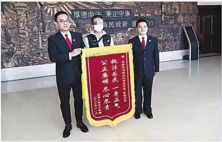 申请执行人给执行法官送锦旗“看着他们为我忙前忙后,心里暖暖的,我想表达一下谢意,请他们吃饭,他们不去;给他们送礼,他们不收,只能送面锦旗表心意。”11月13日,石胜德来到了高新区人民法院,把锦旗交到了办案法官手中。