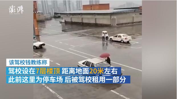 学车还是玩命?7楼楼顶开驾校,学员还冒雨练车!官方回应
