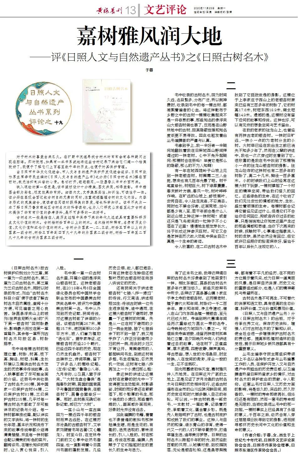 原标题:《嘉树雅风润大地 ——评《日照人文与自然遗产丛书》之《日照古树名木》》