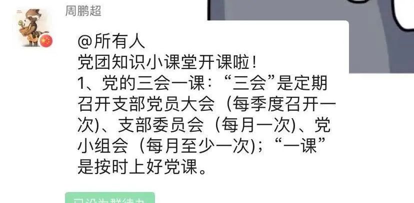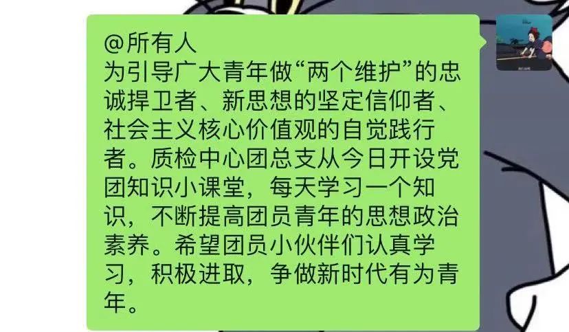 团总支开设党团知识小课堂,通过网上学习的形式,团员青年每天学习一个党的理论知识,进一步加强青年职工的思想政治教育,引导青年职工筑牢信仰之基、补足精神之钙、把稳思想之舵。03