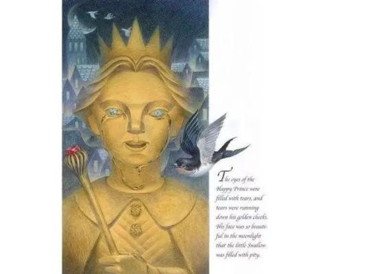 就是我觉得他在这里就是把这种爱情写得特别的优美,但是又有一种特别的凄绝和孤独。我觉得王尔德的这种外情,它是跟一朵纯粹的美是等同的,他认为这种纯粹的美是高于一切,甚至是任何形体上的美、功用上的美,这种这种纯粹的美,他甚至是只在一刹那出现之后,他就面临着毁灭和死亡。我觉得他的这种爱里面,我总觉得有一种基督教的那种殉道者的精神,这种殉道者的精神就又蒙上了一层美的阴翳吧。王尔德他特别喜欢基督,然后他觉得在耶稣的这种殉道当中,他就看到了一种艺术家的生活,因为他认为耶稣这种殉道能够将美和悲伤和爱就是完美地结合起来。所以我觉得王尔德这种童话里的爱情就非常的凄美,我甚至觉得他不太适合给小孩子看。这是我的一个分享。
