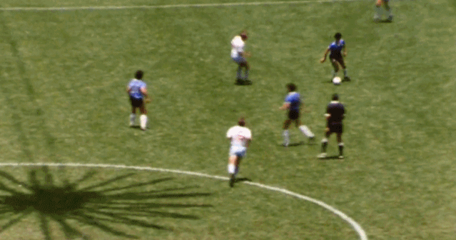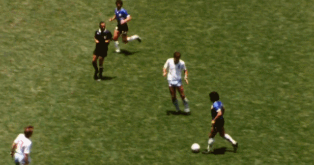 68米的距离,阿斯泰克足球场坑坑洼洼的草皮,5个强壮的英格兰人,这一切都无法阻挡马拉多纳进球。