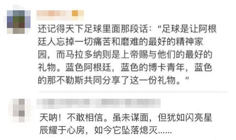 阿根廷球星梅西也在个人社交账户上发文,“今天对于所有阿根廷人和足球界来说都是非常难过的一天。马拉多纳离开的我们,不过他也将永远和我们在一起,马拉多纳是永恒的。我会记住所有与他相处的快乐的日子,在此向他的家人和朋友表达慰问。愿他安息。”