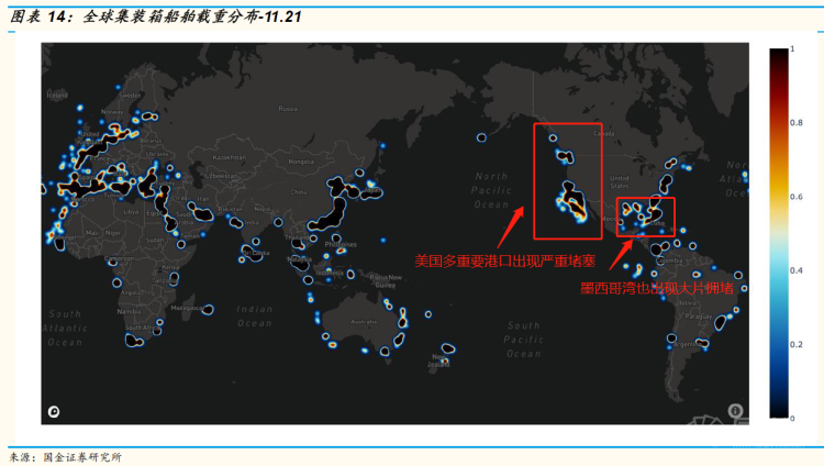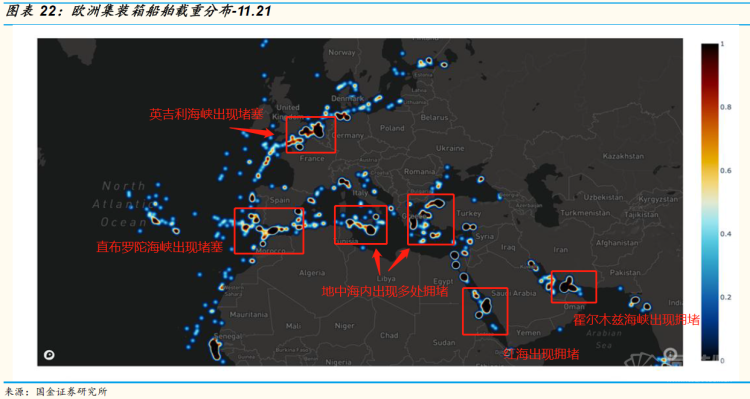 申万宏源认为,随着回程船舶增加,中国与海外集装箱库存不平衡问题会逐步缓解,但空箱回程仍需要时间(欧线单程28-38天),同时,防疫措施导致的集装箱船在港口滞留时间变化也会影响空箱流转的速度。
