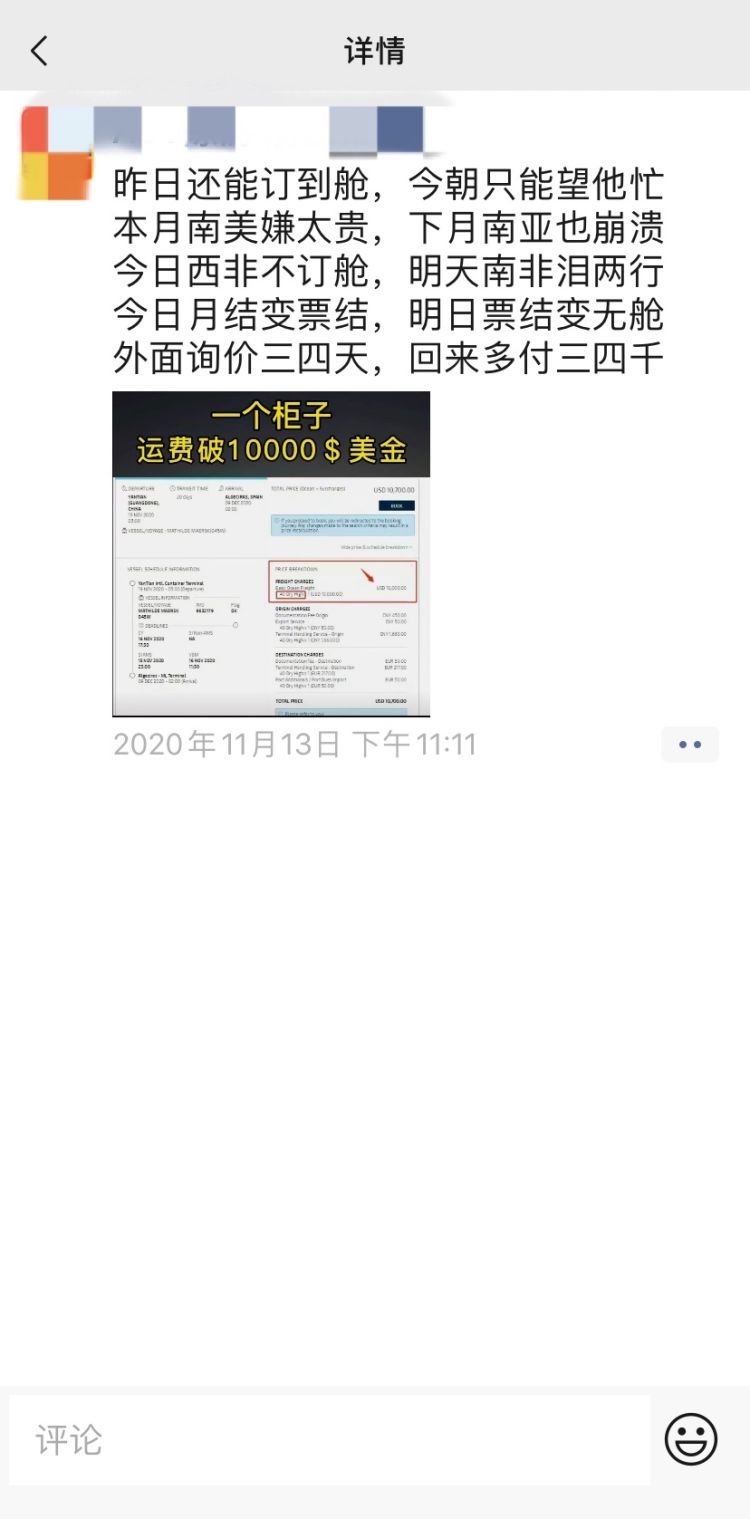 岛城一货代公司负责人发在朋友圈的吐槽。