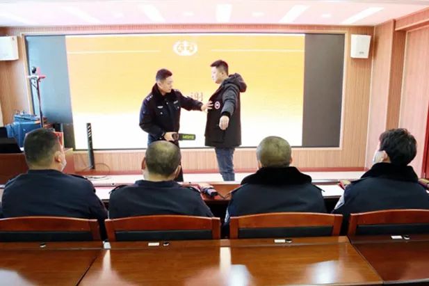 此次培训由司法警察大队中队长张彬主持,培训分为安检理论知识学习、观看安检视频资料、安检实际操作练习、安检技能考核四个部分。安检理论学习