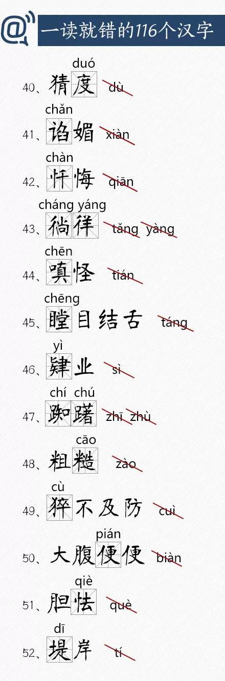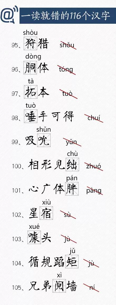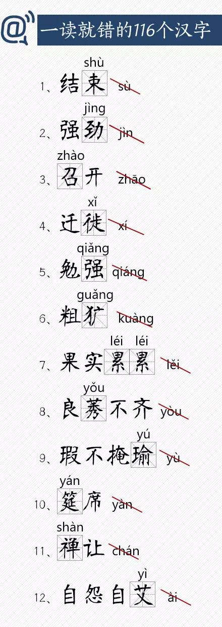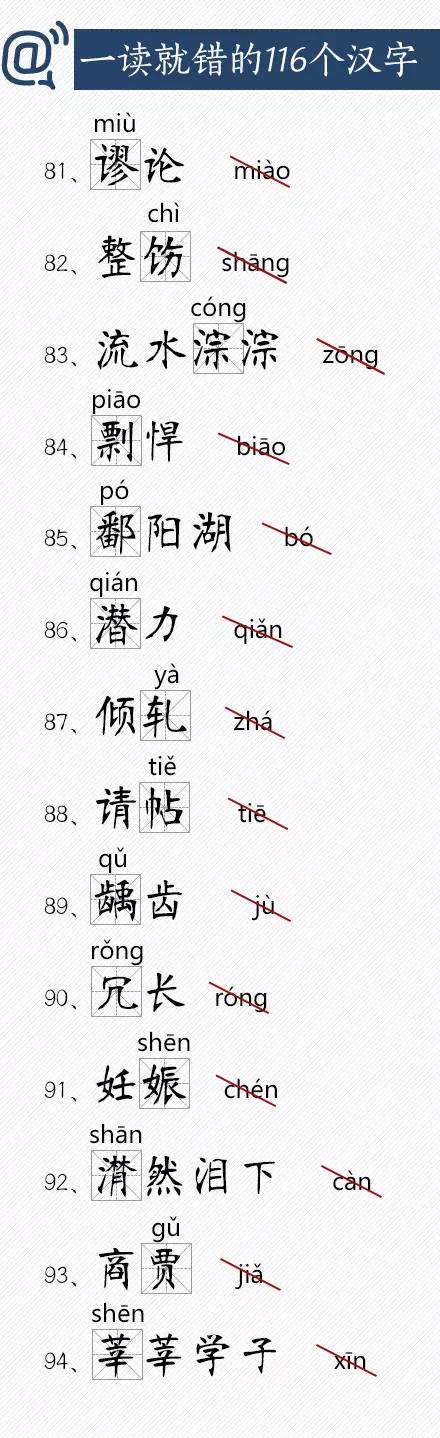 原标题:《常用又易读错的116个汉字,你能读对吗?》