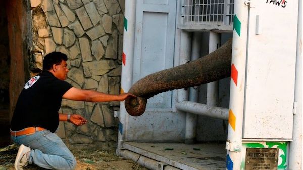 卡万是巴基斯坦唯一的一头亚洲象,它在动物园中的主要“工作”,是逗游客开心。饲养员一举起象钩催促它,它就会举起树干,向游客乞讨,好让他们把钱递过来。