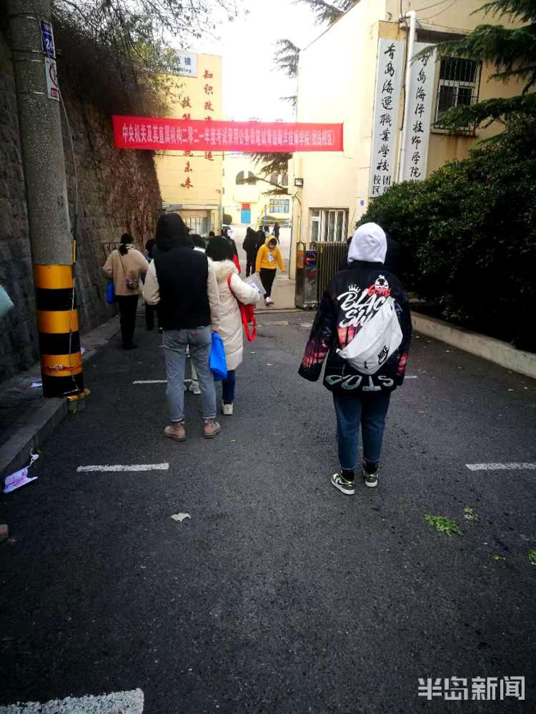 青岛海洋技师学院团岛校区考点,考生有序入场。